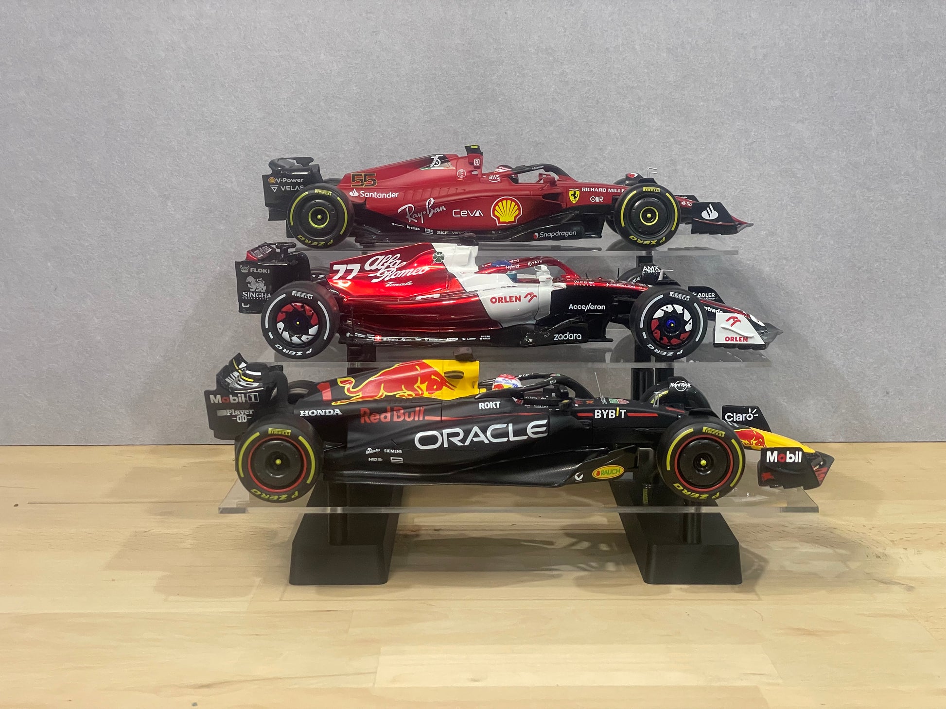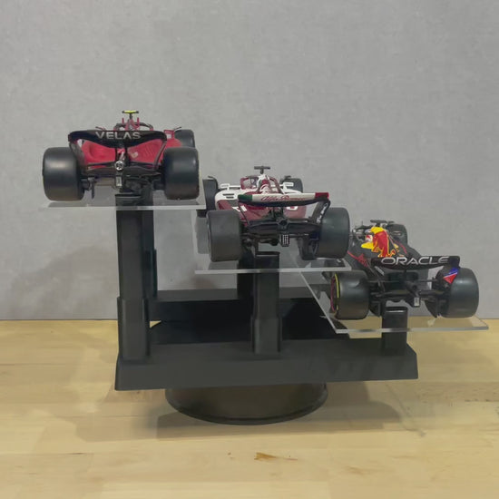 Designed to display your 1:18 scale model cars like pieces of gallery art, this 3-tier level stand is a simple and effective way to showcase three collectable models in a clean, staggered layout. Whether you're into Formula 1, NASCAR, IndyCar, V8 Supercars, Touring Cars or Hypercars, this display stand allows each model to be seen clearly—without visual clutter or obstruction.