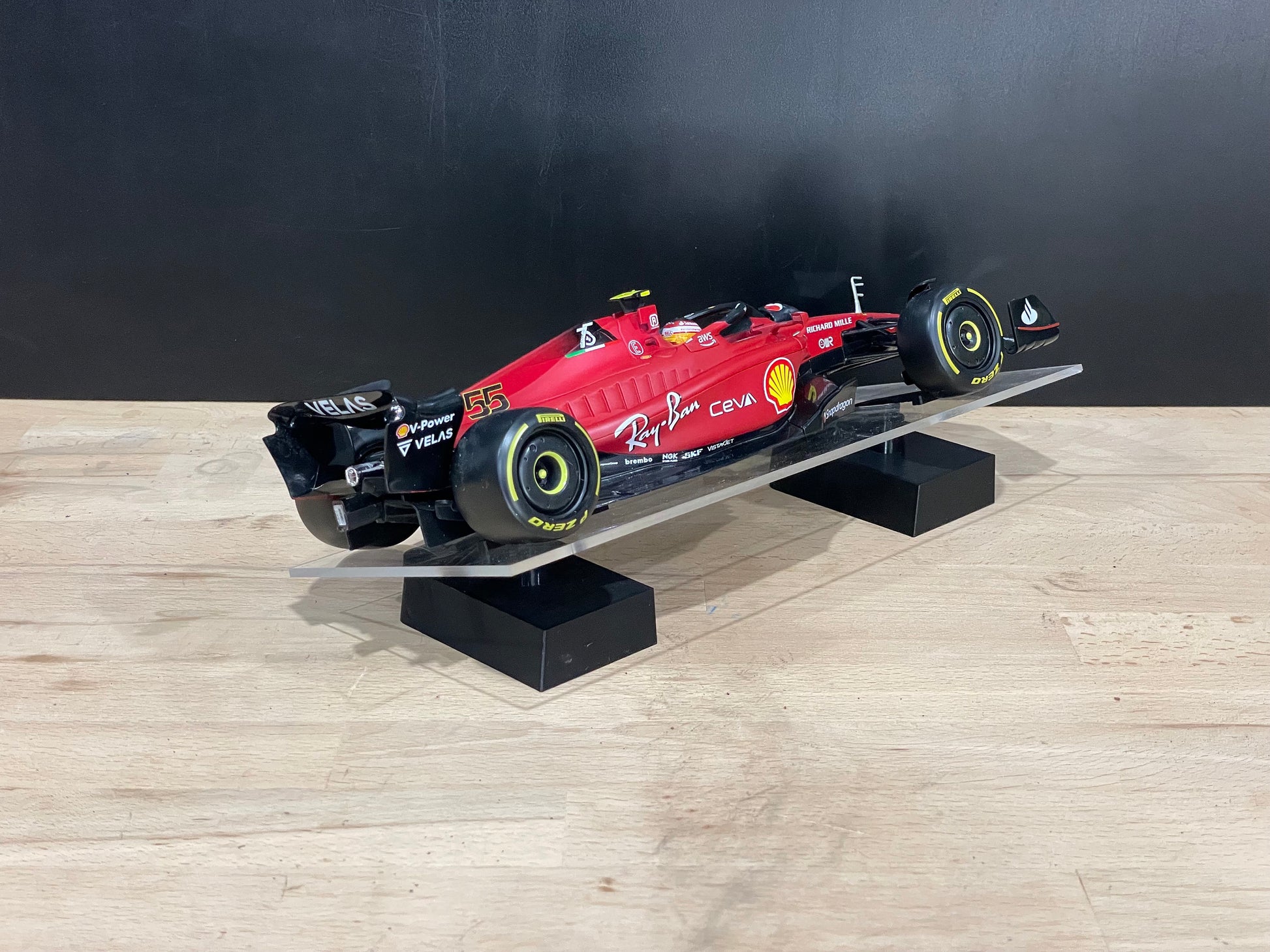 Add a custom plaque to further compliment your model! These custom plagues can either display simple information, such as vehicle year, make and model, or badge of the car. Also offered is the Formula 1 television graphics style for driver and team.