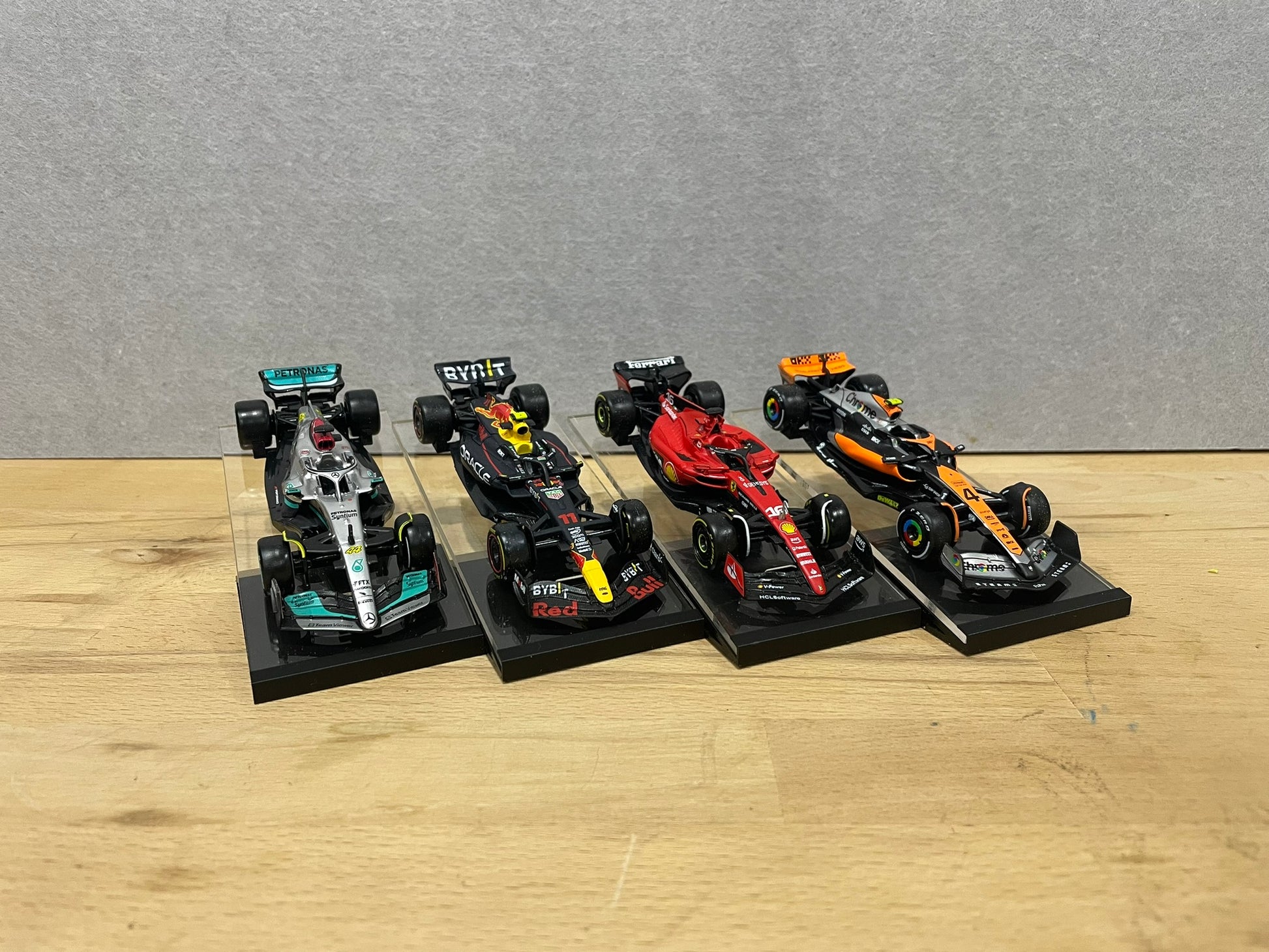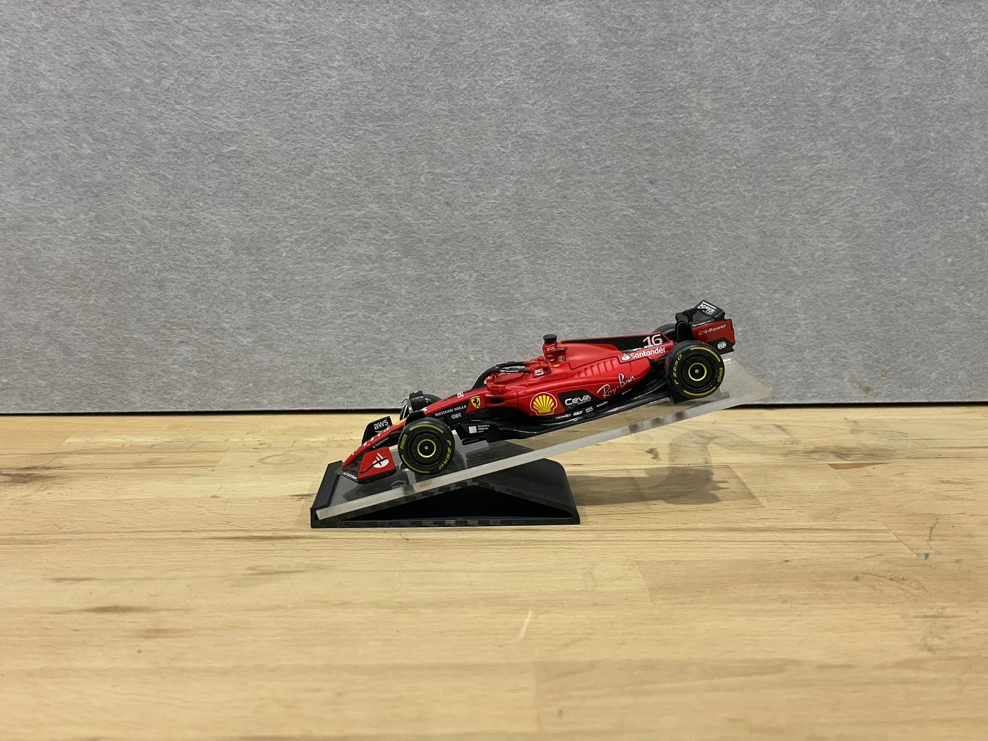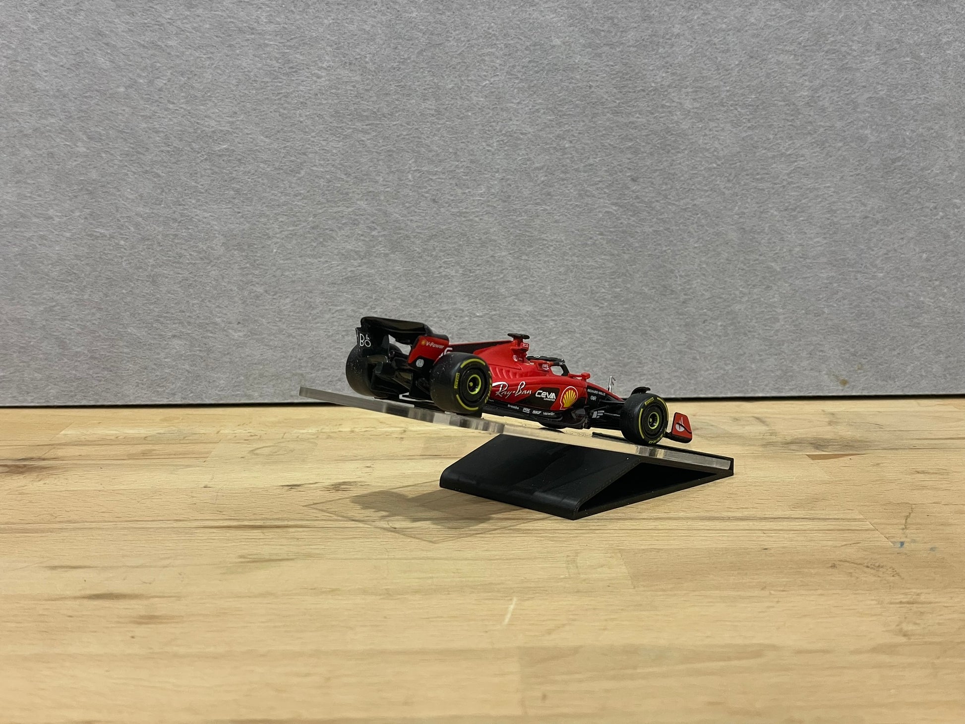Exhibit your 1:43 Formula 1, Indy Car, V8 Supercar, Touring Car, or Hypercar scale model like a piece of modern art in a gallery - This minimalist desktop display stand is the perfect way for displaying your collectable scale model!
